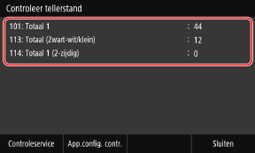 Op het configuratiescherm selecteert u [Controleer tellerstand] op het scherm [Start] en drukt u op