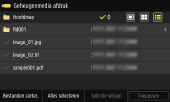 U kunt alle weergegeven bestanden selecteren met behulp van [Alles selecteren] onderaan het scherm. Als er zowel PDF bestanden als beeldbestanden (JPEG of TIFF bestanden) zijn, verschijnt er een scherm waar u het bestandstype selecteert. Kies nu het bestandstype dat u wilt afdrukken.