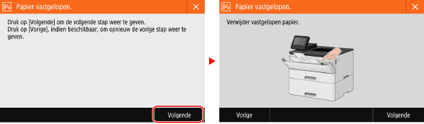 , en volg de scherminstructies over hoe u de papierstoring oplost.