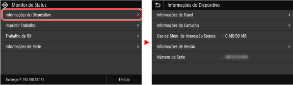 Quando toca no nome ou no botão de um item, pode selecioná-lo. Aparece o ecrã selecionado ou a função selecionada é executada.