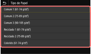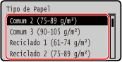 Selecione o tipo de papel colocado no tabuleiro multifunções.