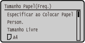 Quando está colocado um papel de tamanho não padrão (Tamanho personalizado)