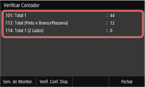 No painel de controlo, selecione [Verificar Contador] no ecrã [Início] e prima