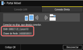 Verifique o SSID e a chave de rede da máquina apresentados no separador [Conexão Direta].