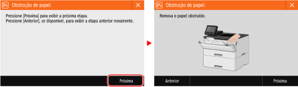 , e siga as instruções apresentadas sobre como retirar o papel encravado.