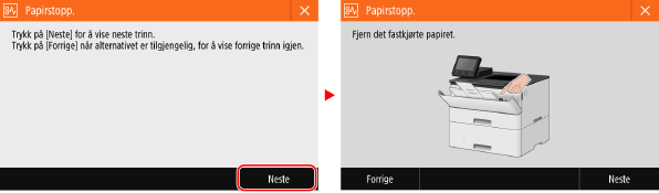 Eksempel på visning: Når det oppstår en feil Modell med berøringspanel ![]() Svart-/hvit LCD-modell ![]() |
