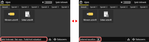 ] på kontrollpanelet. Som standard vises skjermbildet [Hjem] etter at strømmen er slått på og like etter at oppstartskjermbildet lukkes, samt like etter at du har logget inn. Skjermbildet [Hjem]
