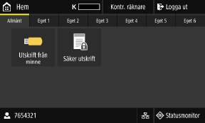 Sortera om knappar och byta namn på flikar (fjärranvändargränssnittet) (Pekskärmsmodell)* Som standard visas flikarna [Allmänt] till [Eget 6].