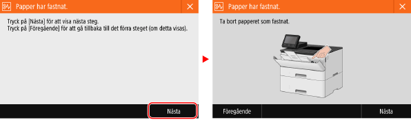 Visningsexempel: När ett fel inträffar Pekskärmsmodell ![]() Svartvit LCD-modell ![]() |