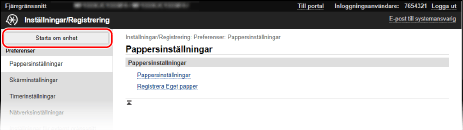 Klicka på [Inställningar/Registrering] på fjärranvändargränssnittets portalsida.