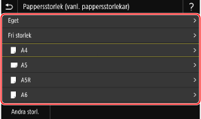 Tryck på [Andra storl.] och välj pappersformatet i listan som visas.