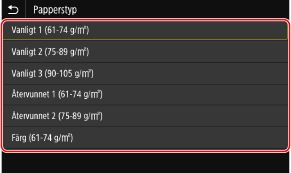Välj den papperstyp som har fyllts på i papperslådan och tryck på