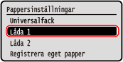 Välj den papperslåda vars inställningar du vill ändra och tryck på