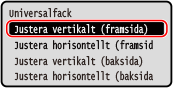 Du kan ange justeringsriktning och bredd för varje papperskälla och utskriftssida (fram- och baksidan).