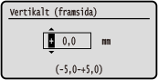 Ange justeringsbredden genom att välja ett positivt värde för att justera nedåt på papperet eller ett negativt värde för att justera uppåt på papperet.