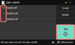 Markera kryssrutan för de säkra data som ska skrivas ut och tryck på [Start].