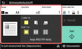 Inställningsskärmen för Minnesenhetsutskrift visas.