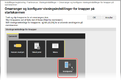 For at ændre visningsrækkefølgen ved at trække i knapperne skal du klikke på [Rediger i Knapvisning].