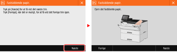 Eksempel på skærm: Hvis der opstår en fejl Model med berøringspanel ![]() Sort/hvid LCD-model ![]() |