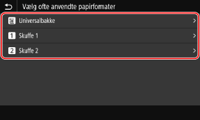 Skærmen [Vælg ofte anvendte papirformater] vises.