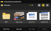Skærmen for valg af filer på USB-hukommelsesenhed (Model med berøringspanel)