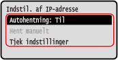 1 | Tryk på [Autohentning]. Skærmen [Indstill. for IP-adresse (Autohentning)] vises. |