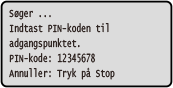 Når denne skærm vises, skal du registrere WPS PIN-koden for den trådløse LAN-router inden for 10 minutter.