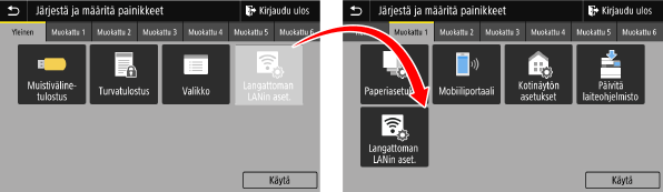 Voit järjestää [Koti]-näytön painikkeet uudelleen ja siirtää painikkeita muihin välilehtiin.