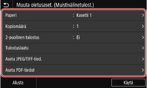 [Muuta oletusasetuksia (muistivälinetulostus)]4