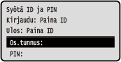 Jos järjestelmävalvojan tunnus on asetettu, kirjautumisnäyttö näytetään toiminnoille, joihin tarvitaan järjestelmänvalvojan oikeudet. Kirjaudu syöttämällä järjestelmävalvojan tunnus ja PIN-koodi.