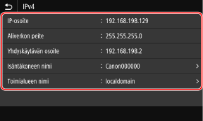 Voit näyttää laitteeseen asetetun IP-osoitteen, kuten IPv4-osoitteen ja IPv6-osoitteen.