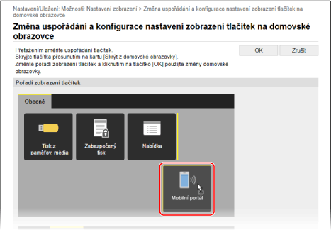 V položce [Změna uspořádání a konfigurace nastavení zobrazení tlačítek na domovské obrazovce] vyberte možnost [Upravit v zobrazení tlačítek] nebo [Upravit v zobrazení seznamu].