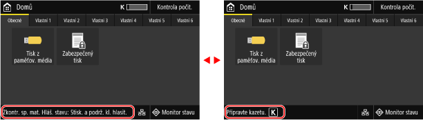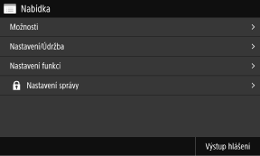 ] na ovládacím panelu. Ve výchozím nastavení se obrazovka [Domů] zobrazí po zapnutí napájení, ihned po zavření úvodní obrazovky a ihned po přihlášení. Obrazovka [Domů]