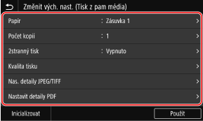 [Změnit výchozí nastavení (Tisk z paměťového média)].