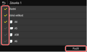 Zrušte zaškrtnutí políček velikostí papíru, které chcete skrýt, a klikněte na tlačítko [Použít].