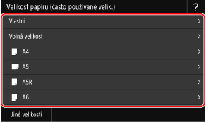 Velikost papíru zobrazenou na obrazovce v kroku 1 můžete změnit. Skrytí nepoužívaných formátů papíru