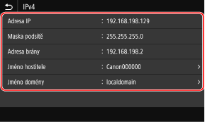 Nastavení IP adresy nastavené pro zařízení, jako je adresa IPv4 a adresa IPv6, je možné zobrazit.