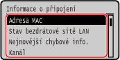 Zobrazení MAC adresy a informací o připojení bezdrátové sítě LAN