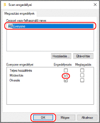 A [Felhasználók] részen válassza a [Mindenki]  [Olv. és írható] lehetőséget.