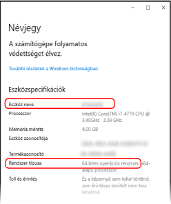 A számítógép neve az [Eszköz neve] mezőben látható.