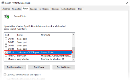 Ellenőrizze a [Portok] lapon, hogy be van-e jelölve a [Kétirányú kommunikáció támogatása] jelölőnégyzet.