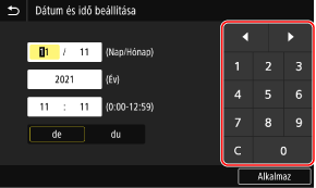 elem jelenik meg, a numerikus billentyűk használatával írhat be számokat.