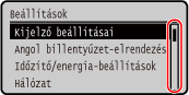 elem a jelzett irányba görgethet a képernyőn. Az aktuálisan kiválasztott elem invertálva jelenik meg.