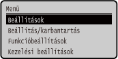 A képernyő megjelenítési módjának módosításaA vezérlőpult megjelenítési módját módosíthatja, például megváltoztathatja a megjelenítési nyelvet és a mértékegységeket, vagy megjelenítheti, illetve elrejtheti az üzeneteket. [Kijelző beállításai]