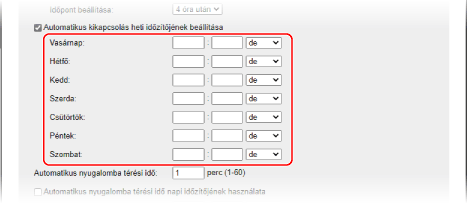Jelölje be a [Automatikus kikapcsolás heti időzítőjének beállítása] jelölőnégyzetet.