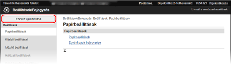 A Távoli felhasználói felület Portál oldalán kattintson a [Beállítások/Bejegyzés] elemre.