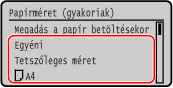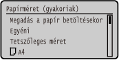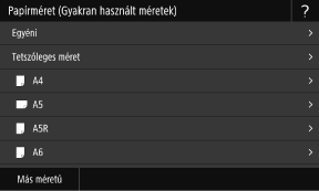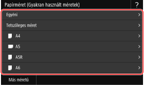 A megjelenített papírméretet az 1. lépésben látható képernyőn módosíthatja. A nem használt papírméretek elrejtése