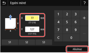 Ha regisztrálja a gyakran használt nem szabványos méreteket, akkor az [S1]–[S3] gomb megnyomásával gyorsan előhívhatja ezeket.