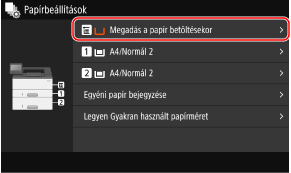 Válassza a [Megadás a papír betöltésekor] lehetőséget, majd nyomja meg az