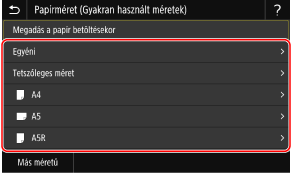 Válassza a [Más méretű] lehetőséget, és válassza ki a papírméretet a megjelenő listából.